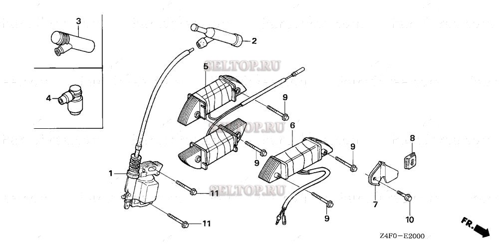 Катушка зажигания для Honda GX120U1 VMS4, взрыв-схема: