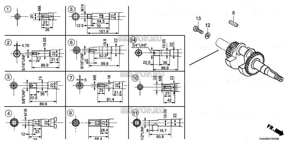 Коленвал для Honda GX120UT2 LXUZ, взрыв-схема: