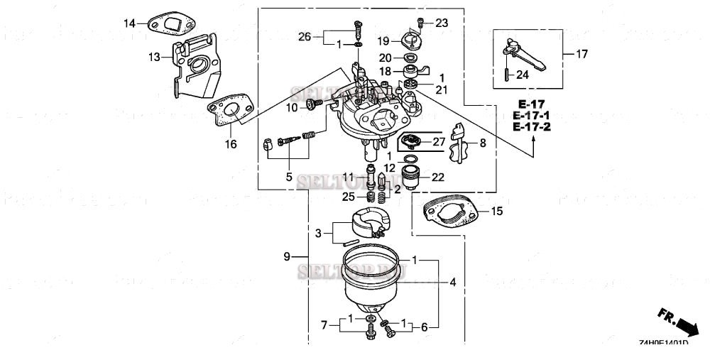 Карбюратор (2) для Honda GX120UT2 QA2, взрыв-схема: