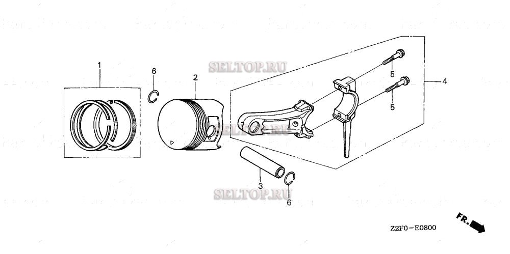 Поршень для Honda GX160K1 HX2/B, взрыв-схема: