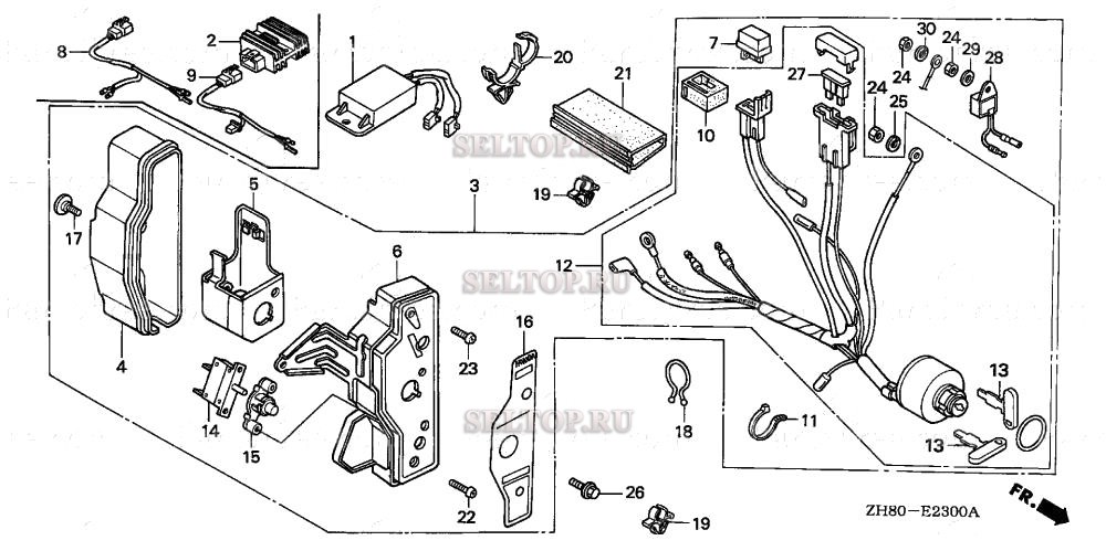 Блок управления (1) для Honda GX160K1 LAX2, взрыв-схема:
