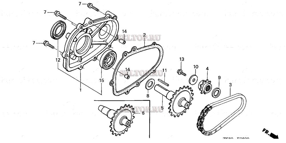 Редуктор (1) для Honda GX160K1 LX2/A, взрыв-схема: