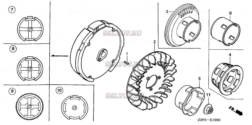 Маховик для Honda GX160K1 QD, взрыв-схема:
