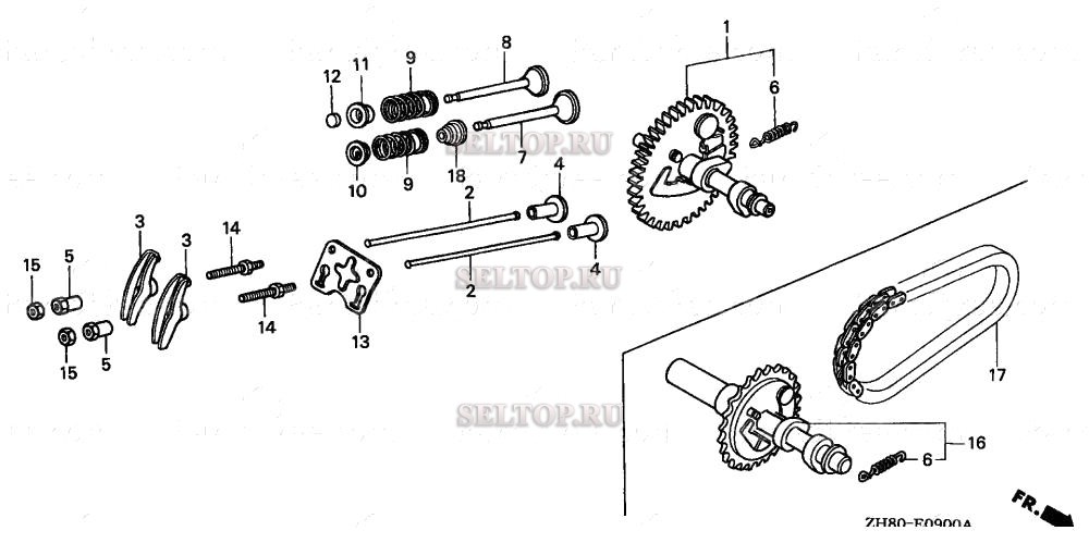 Распредвал для Honda GX160K1 QXE2, взрыв-схема: