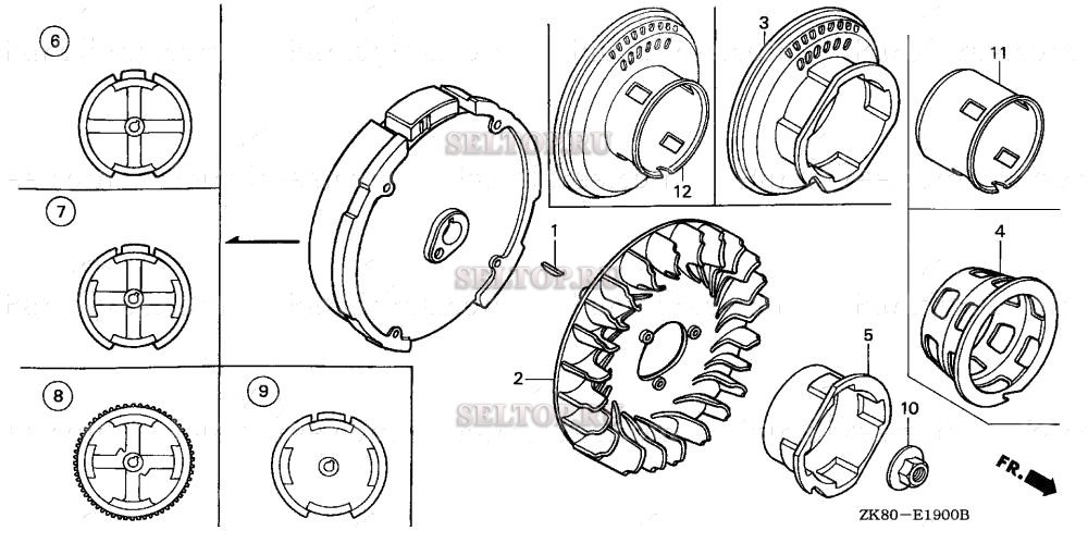 Маховик для Honda GX160K1 QXS2/A, взрыв-схема: