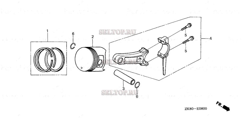 Поршень для Honda GX160K1 QXS2/A, взрыв-схема:
