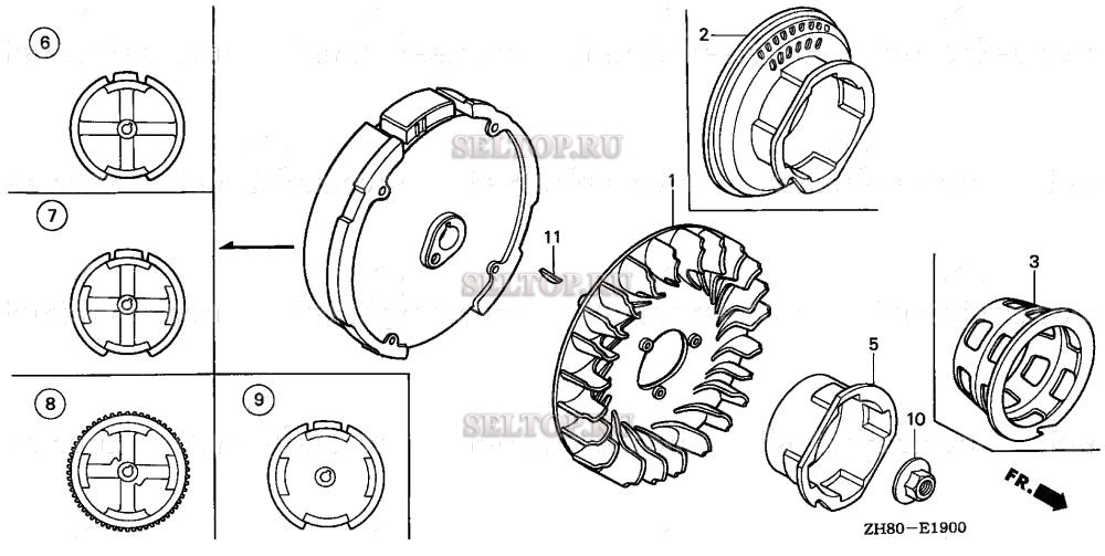Маховик для Honda GX160K1 RH2, взрыв-схема: