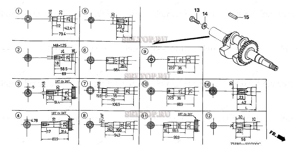 Коленвал (1) для Honda GX160K1 SAC, взрыв-схема: