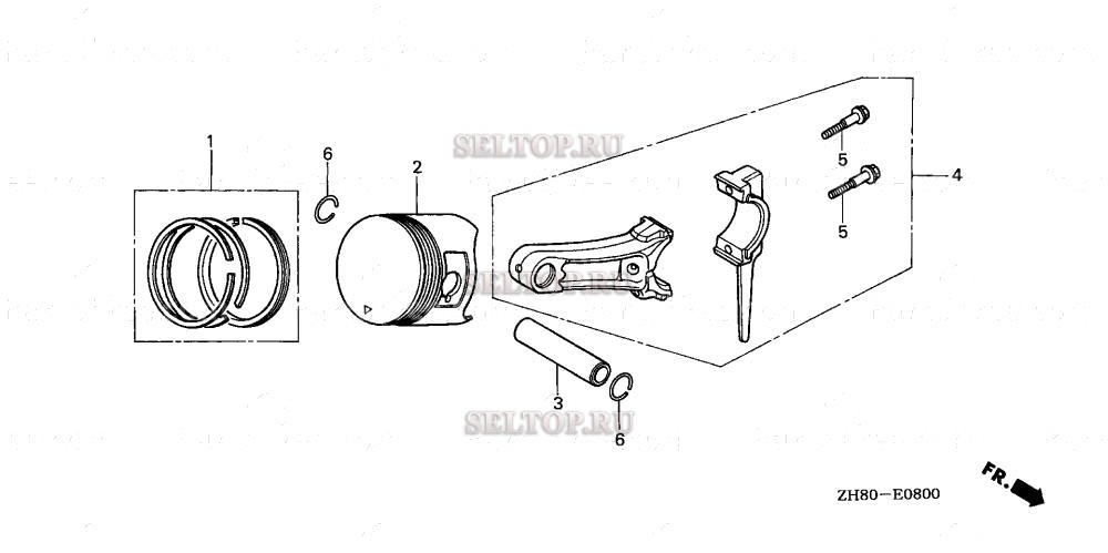 Поршень для Honda GX160K1 SAC, взрыв-схема: