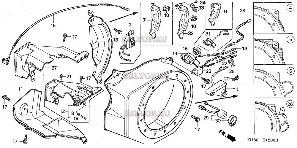 Кожух вентилятора для Honda GX160K1 VG24, взрыв-схема: