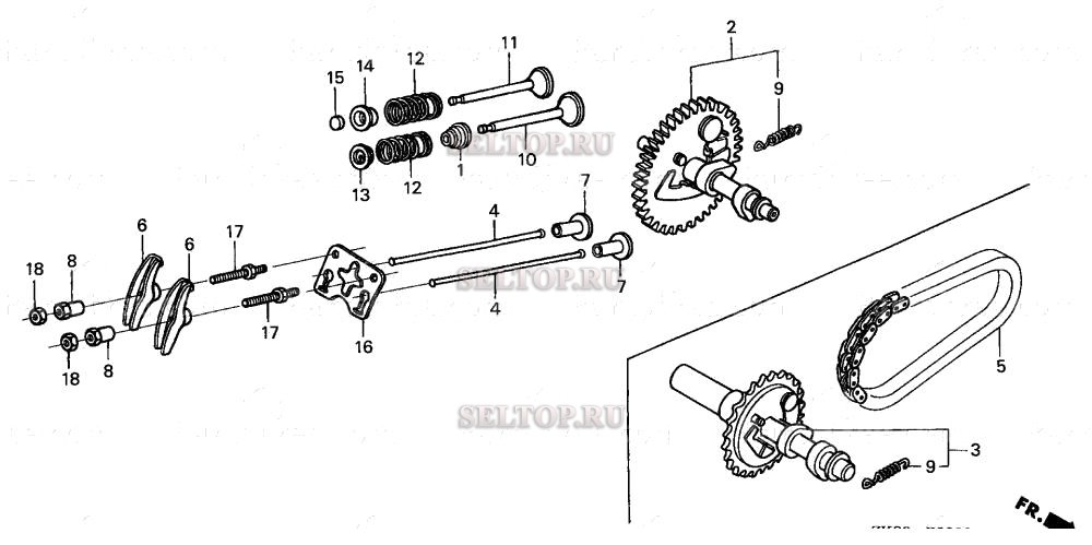 Распредвал для Honda GX160K1 VXP, взрыв-схема: