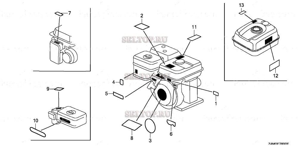 Этикетка для Honda GX160RT2 VWS, взрыв-схема: