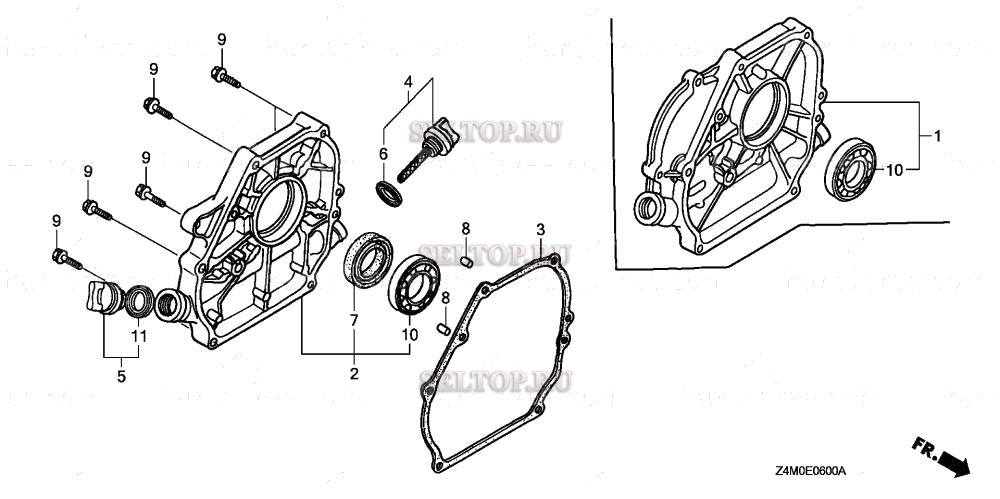 Крышка картера для Honda GX160RT2 VWS, взрыв-схема: