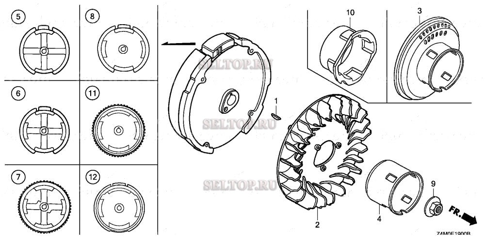Маховик для Honda GX160RT2 VWS, взрыв-схема: