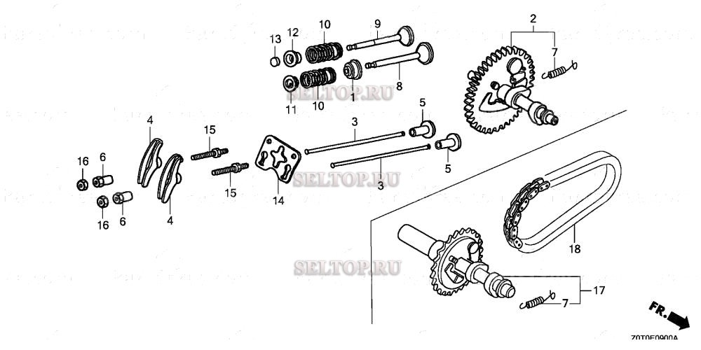 Распредвал для Honda GX160T1 QWX2, взрыв-схема: