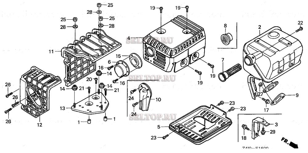 Глушитель (1) для Honda GX160U1 ARC6, взрыв-схема: