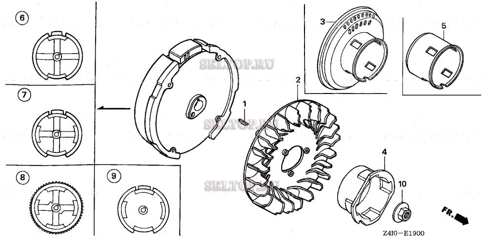 Маховик для Honda GX160U1 QHQ4, взрыв-схема: