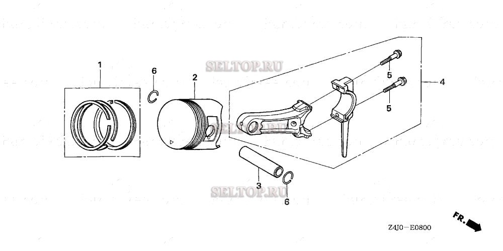 Поршень для Honda GX160U1 SG24, взрыв-схема: