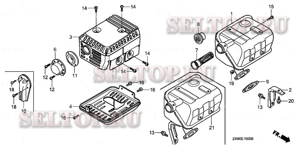 Глушитель (1) для Honda GX160UT1 VS19, взрыв-схема: