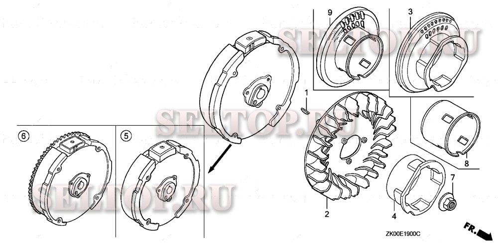 Маховик для Honda GX200 HX/A, взрыв-схема: