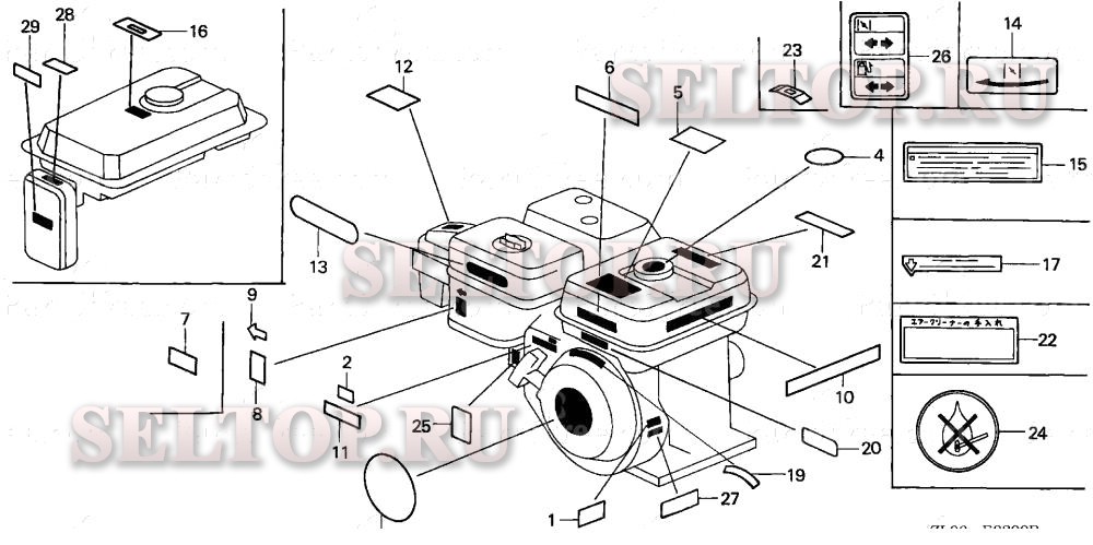 Этикетка для Honda GX200 SM22, взрыв-схема: