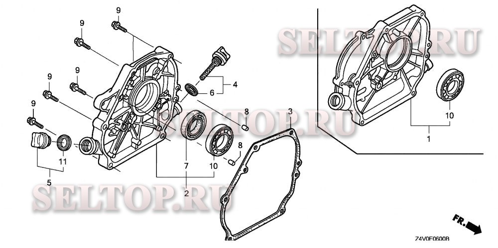 Крышка картера для Honda GX200RT2 QXGN, взрыв-схема: