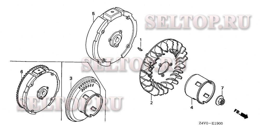 Маховик для Honda GX200RT2 QXGN, взрыв-схема: