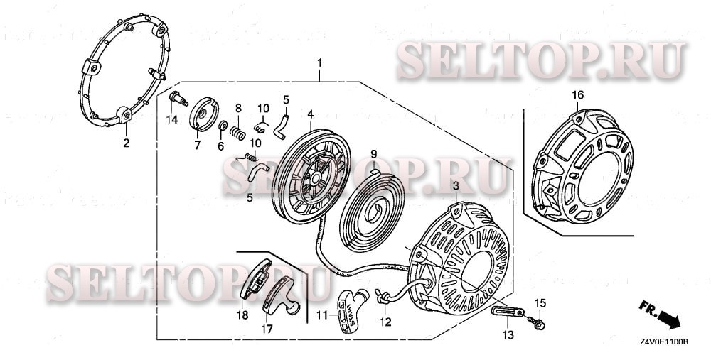 Ручной стартер для Honda GX200RT2 VEE9, взрыв-схема: