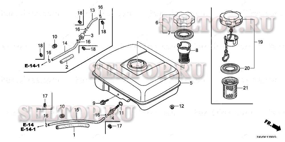 Топливный бак (1) для Honda GX200RT2 VGGN, взрыв-схема: