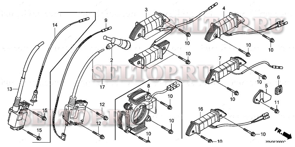 Катушка зажигания для Honda GX200T LX2, взрыв-схема: