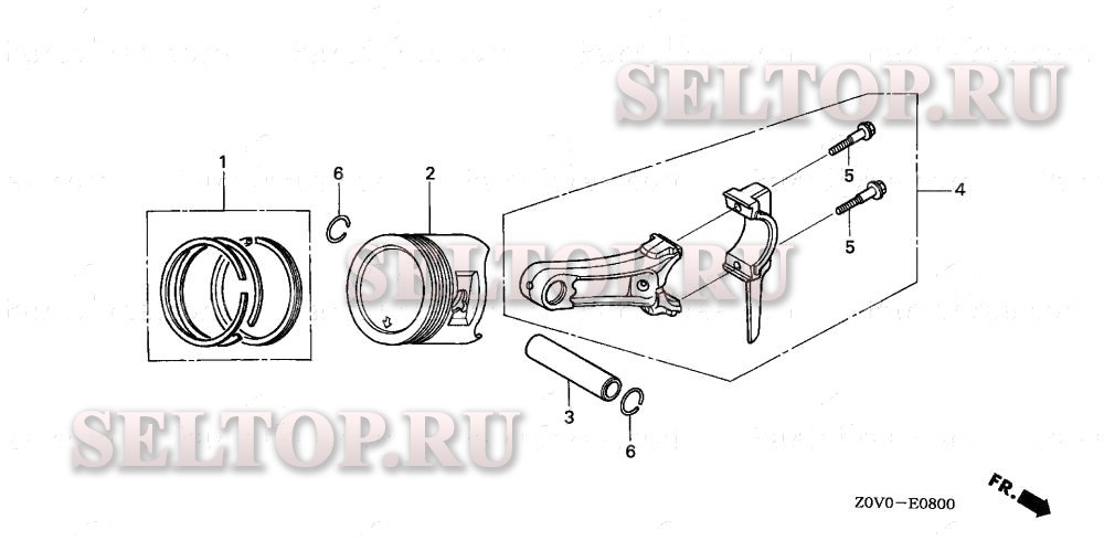 Поршень для Honda GX200T LX2, взрыв-схема: