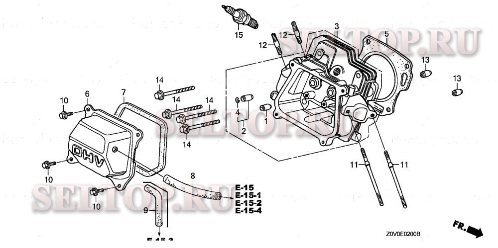 Головка цилиндра для Honda GX200T TX2, взрыв-схема: