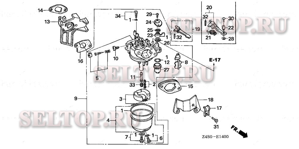 Карбюратор (1) для Honda GX200U HXU, взрыв-схема: