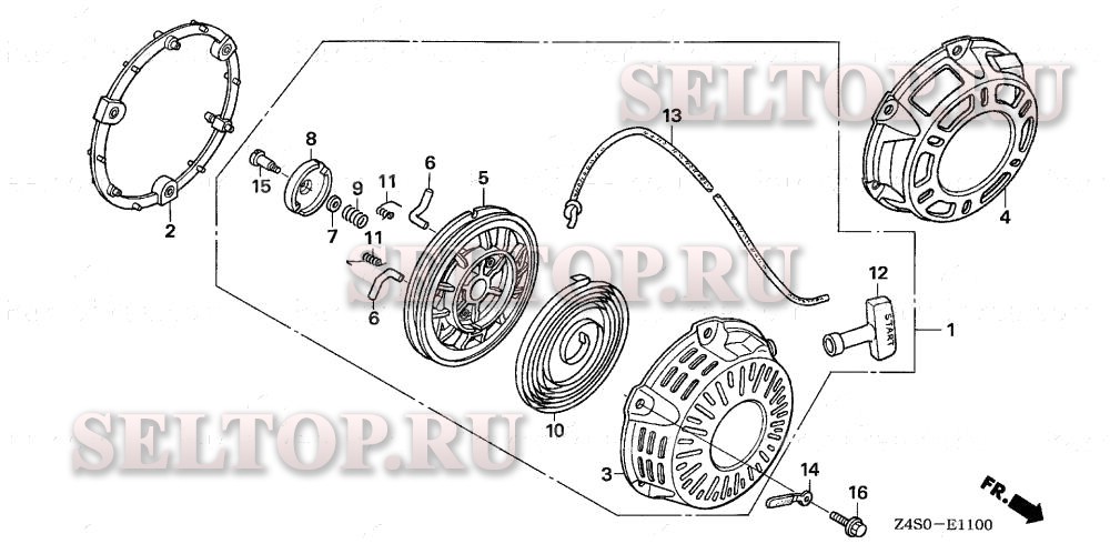 Ручной стартер для Honda GX200U QH26, взрыв-схема: