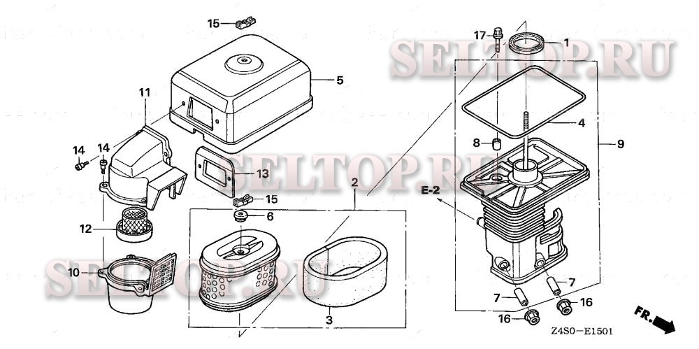 Воздушный фильтр (cyclone) для Honda GX200U QTP2, взрыв-схема: