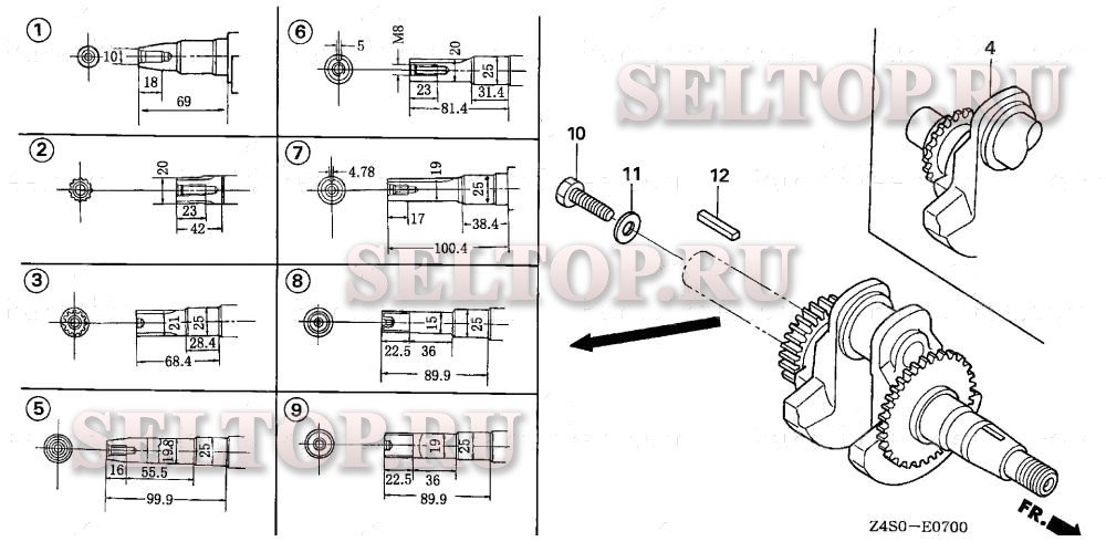 Коленвал для Honda GX200U SWG4, взрыв-схема: