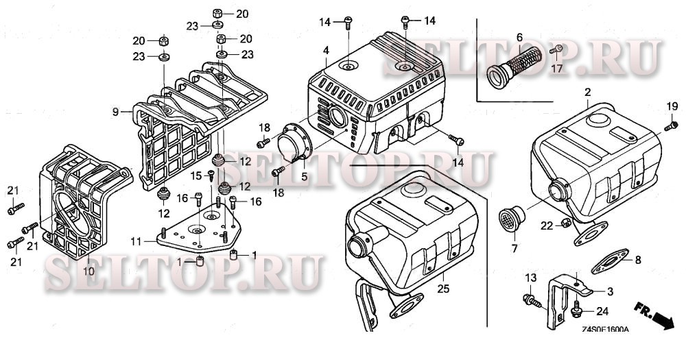 Глушитель для Honda GX200U VSD2, взрыв-схема: