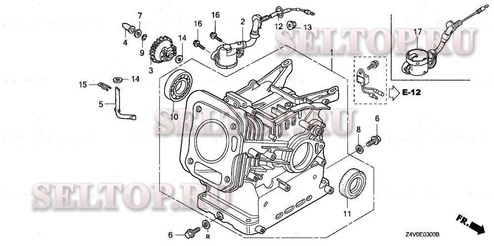 Блок цилиндров для Honda GX200UT VGG2, взрыв-схема: