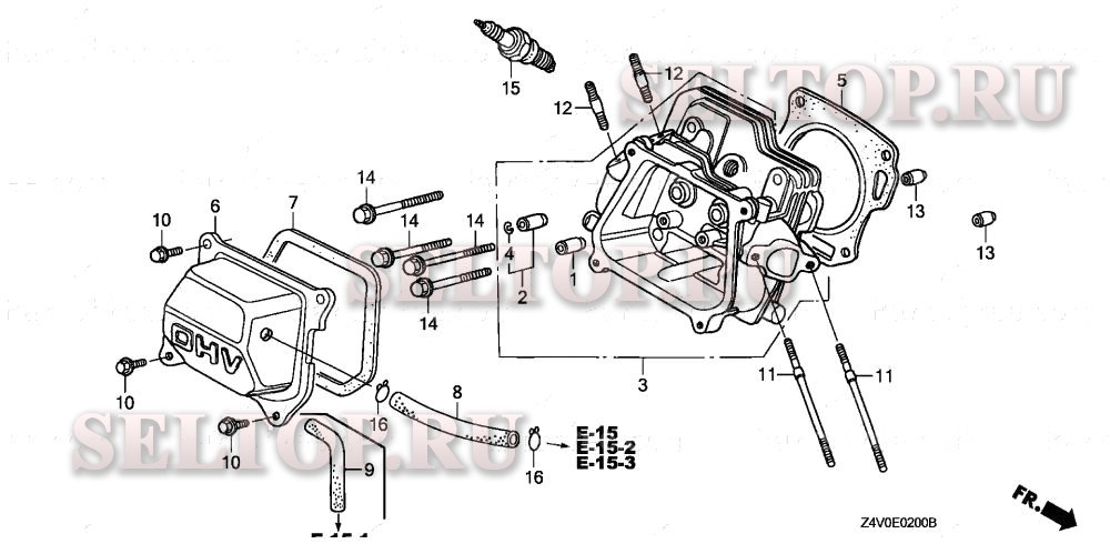 Головка цилиндра для Honda GX200UT VXU1, взрыв-схема: