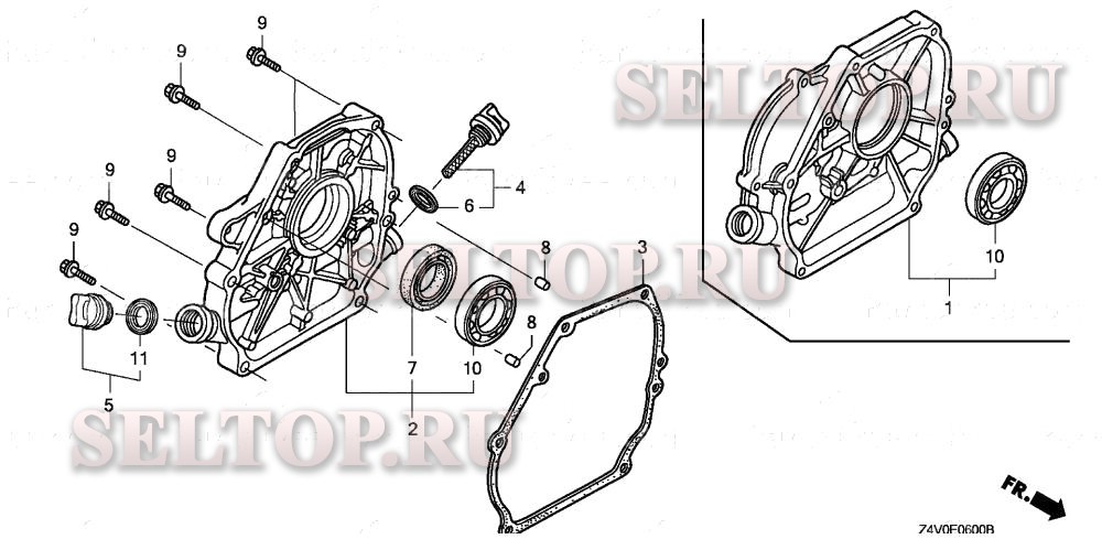Крышка картера для Honda GX200UT2 QX2, взрыв-схема: