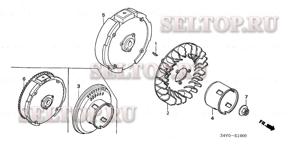 Маховик для Honda GX200UT2 QXD4, взрыв-схема: