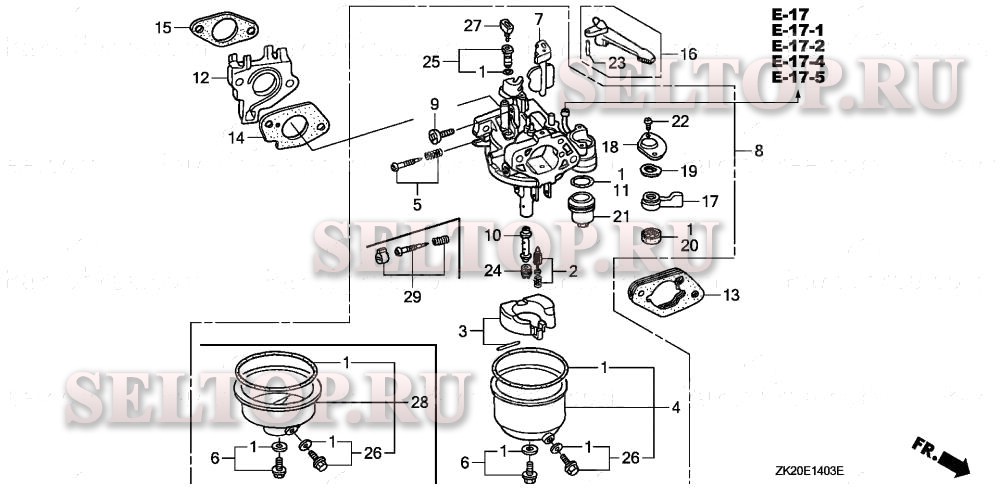 Карбюратор (4) для Honda GX240K1 HA2/A, взрыв-схема: