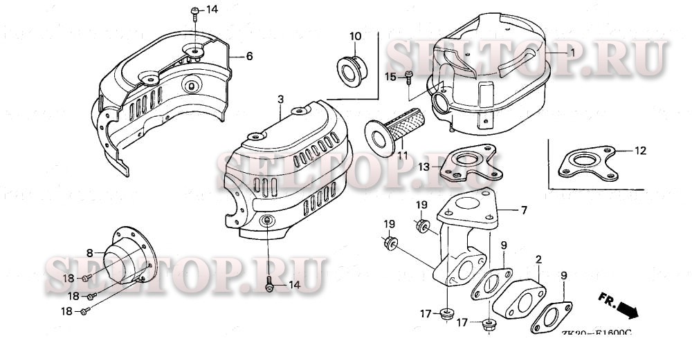 Глушитель (1) для Honda GX240K1 QAB2, взрыв-схема: