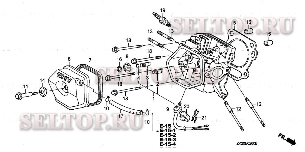 Головка цилиндра для Honda GX240K1 QC12, взрыв-схема: