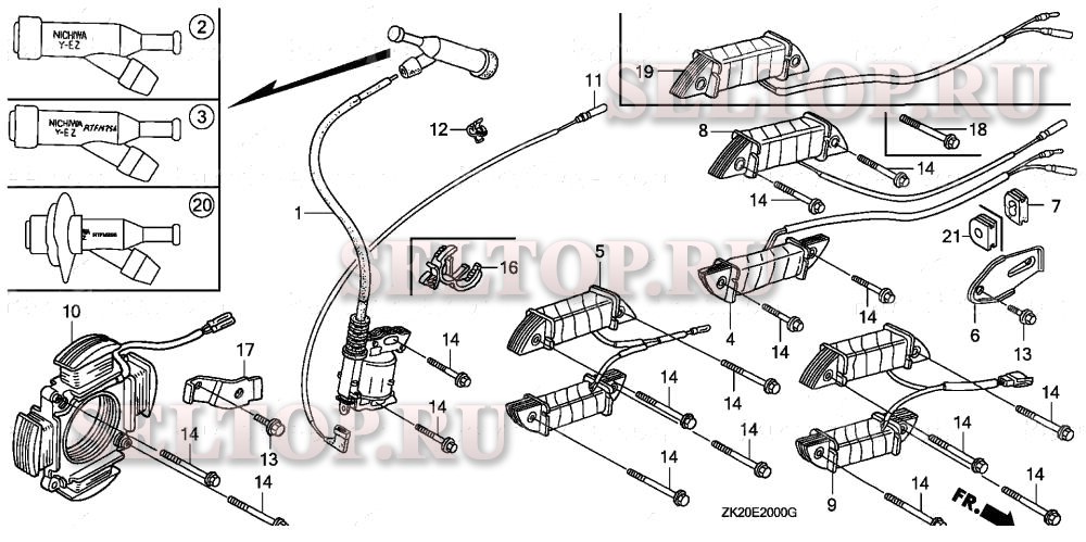 Катушка зажигания для Honda GX240K1 QC12, взрыв-схема: