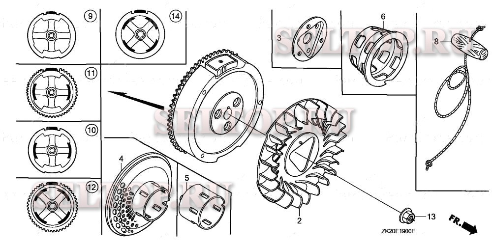 Маховик для Honda GX240K1 QTC2, взрыв-схема: