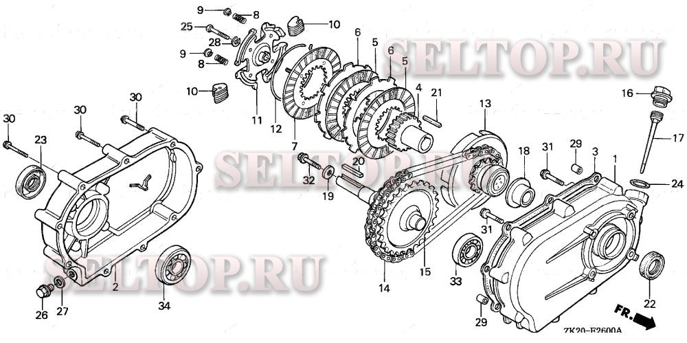 Редуктор (1/2) (1) для Honda GX240K1 RA, взрыв-схема:
