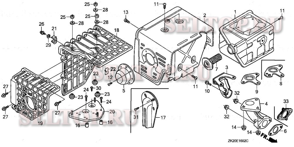 Глушитель (3) для Honda GX240K1 VXP/A, взрыв-схема: