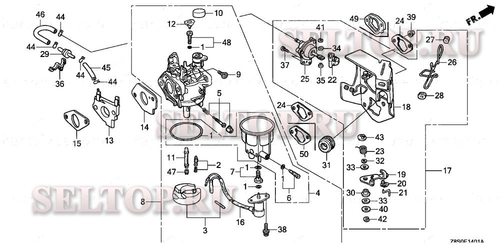 Карбюратор (2) для Honda GX240RT2 VMT2, взрыв-схема: