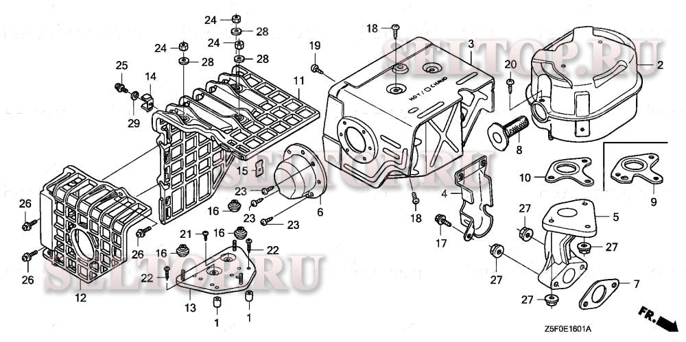 Глушитель (2) для Honda GX240U1 QAE2, взрыв-схема: